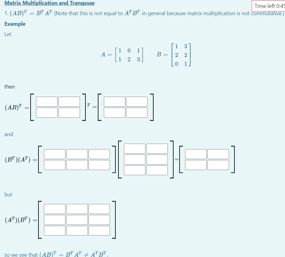 Solved Matrix Multiplication and Transpose 1. (AB)T=BTAT | Chegg.com