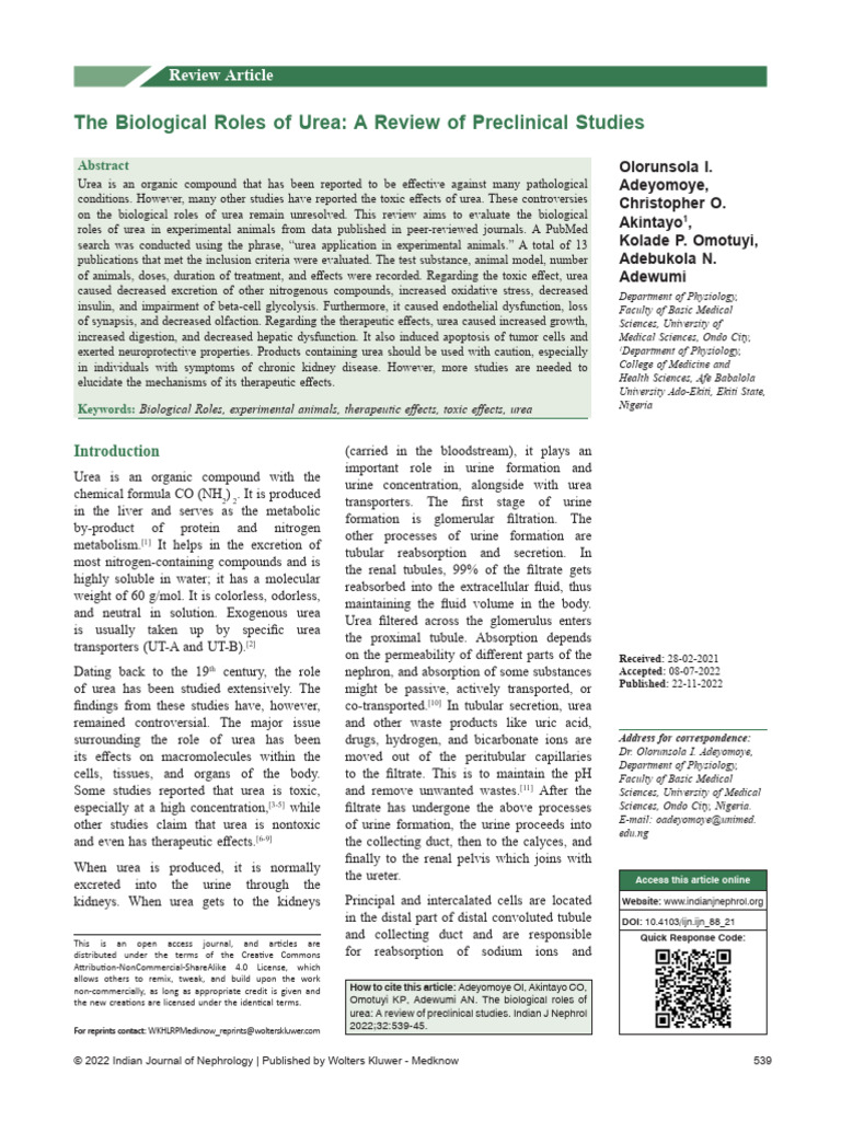 The Biological Roles of Urea A Review Of.6 | PDF | Kidney | Urea