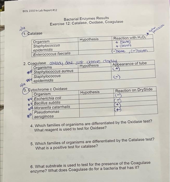 Solved BIOL 2310 In Lab Report #12 Bacterial Enzymes Results | Chegg.com
