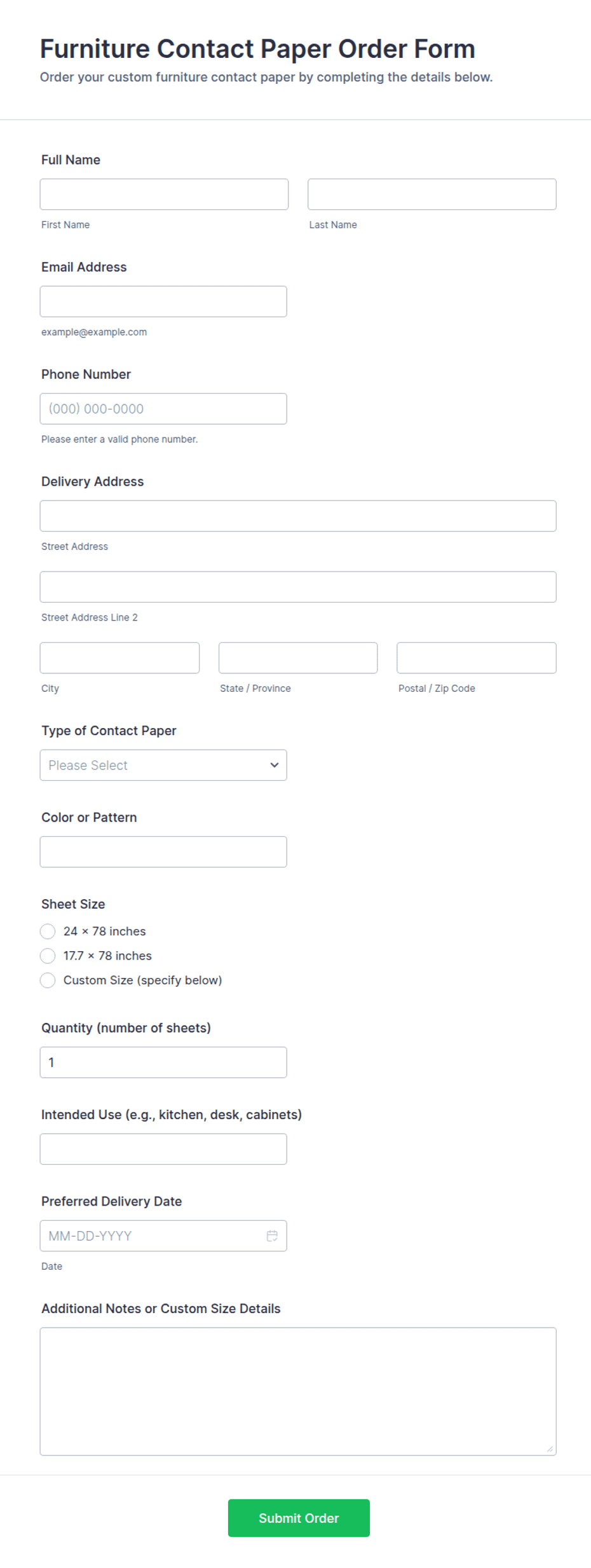 Furniture Contact Paper Order Form Template | Jotform