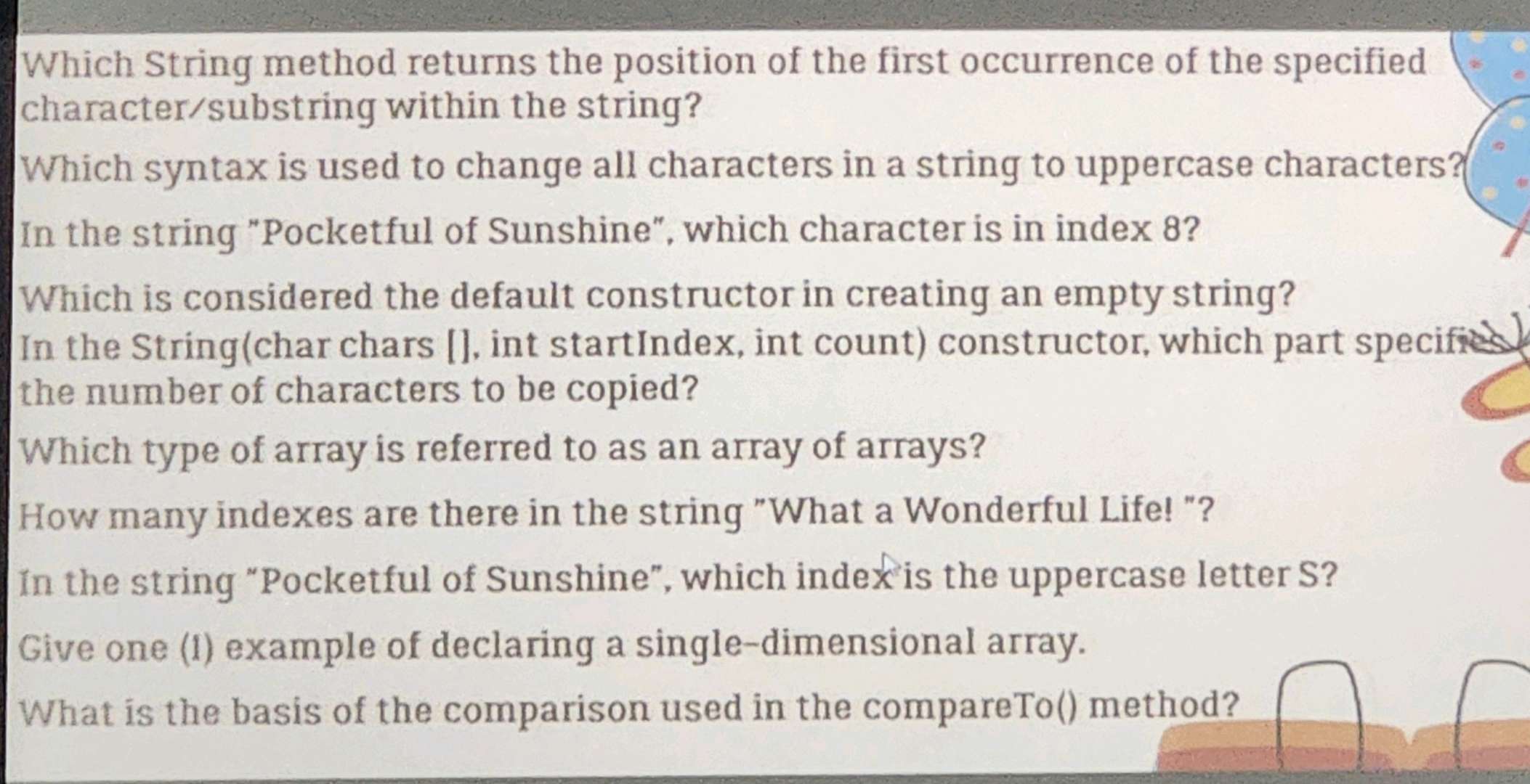 Which String method returns the position of | StudyX