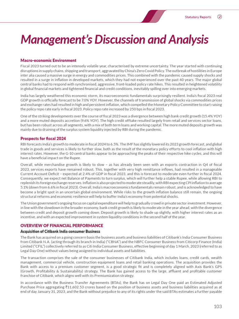 Axis Bank AR 2022-23 - MD-A | PDF | Fiscal Policy | Inflation
