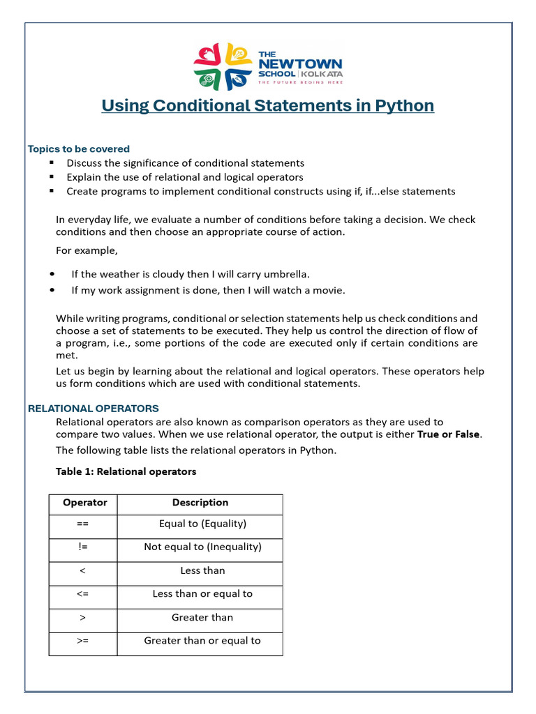 Using Conditional Statements in Python Notes FINAL - 250922 - 170444 ...