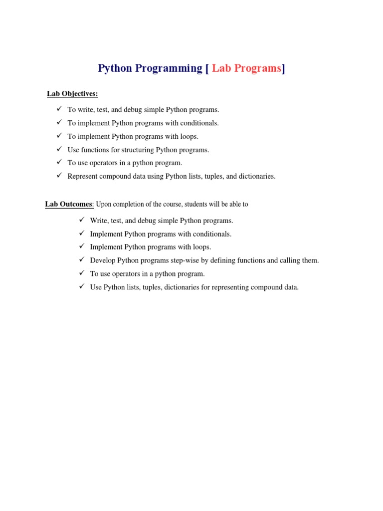 Python Programming Laboratory Manual (B.Tech I Year II Sem) - Studocu