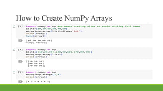 CREATING NUMPY ARRAYS IN PYTHON WITH AN EXAMPLE | PPTX