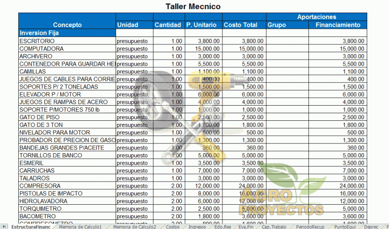Presupuesto de un taller en XLS | Descargar CAD gratis (50.93 KB ...