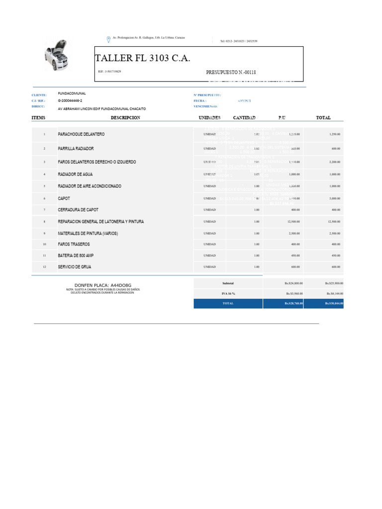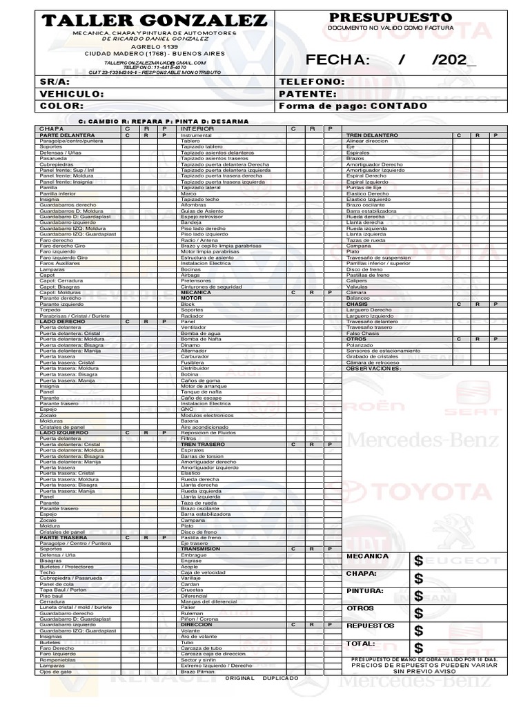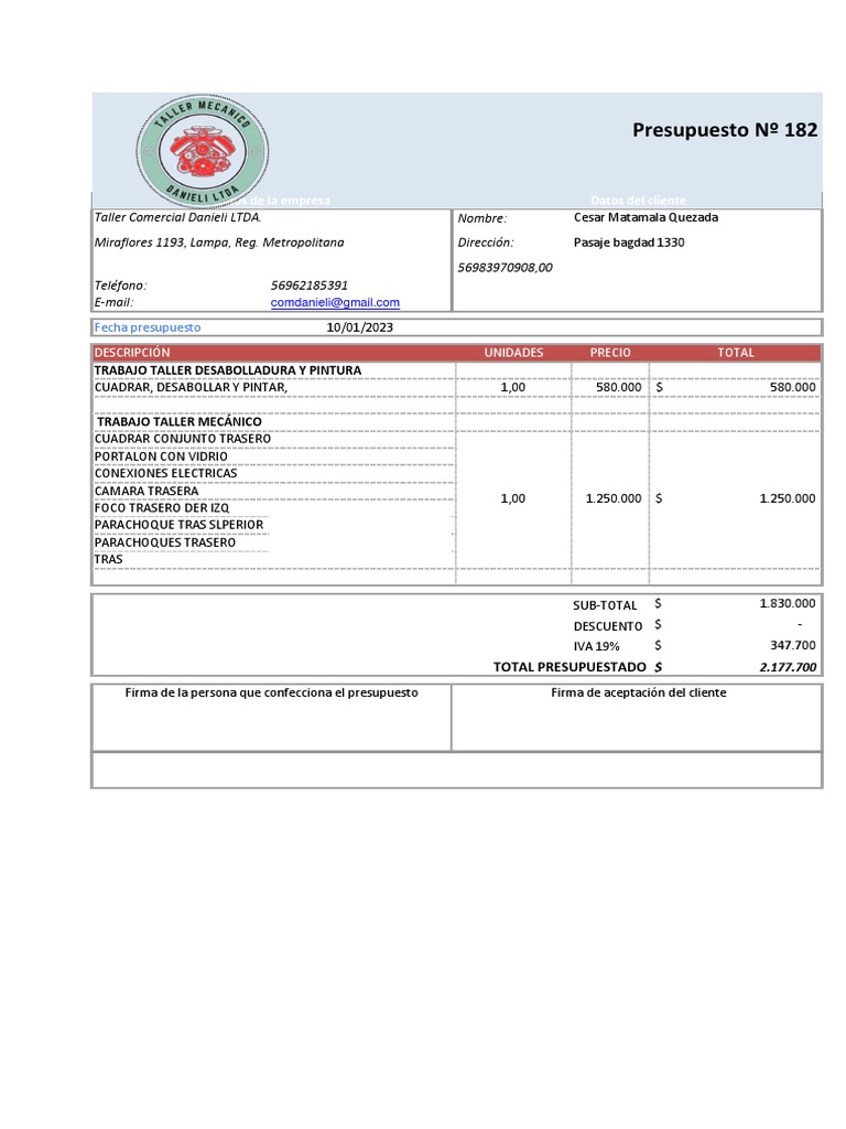 Presupuesto Taller Chapa y Pintura | PDF | Eje | Tecnologías automotrices