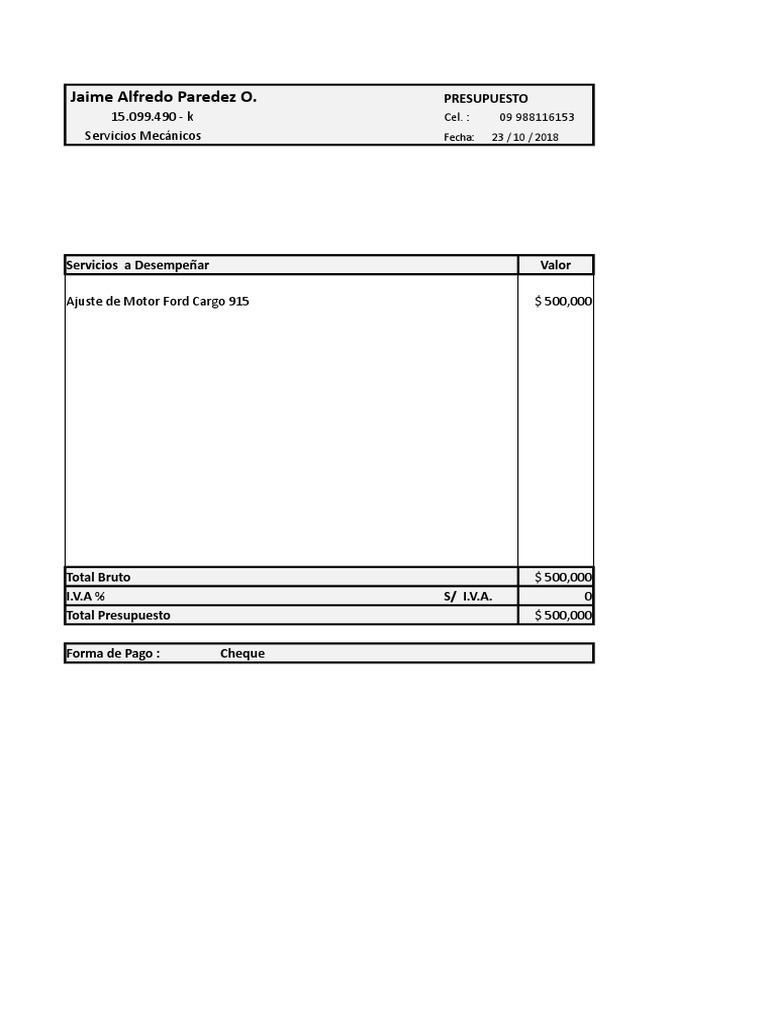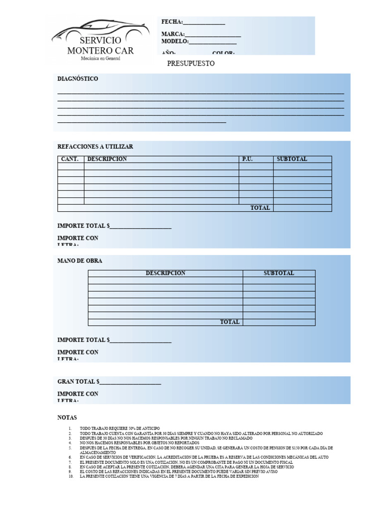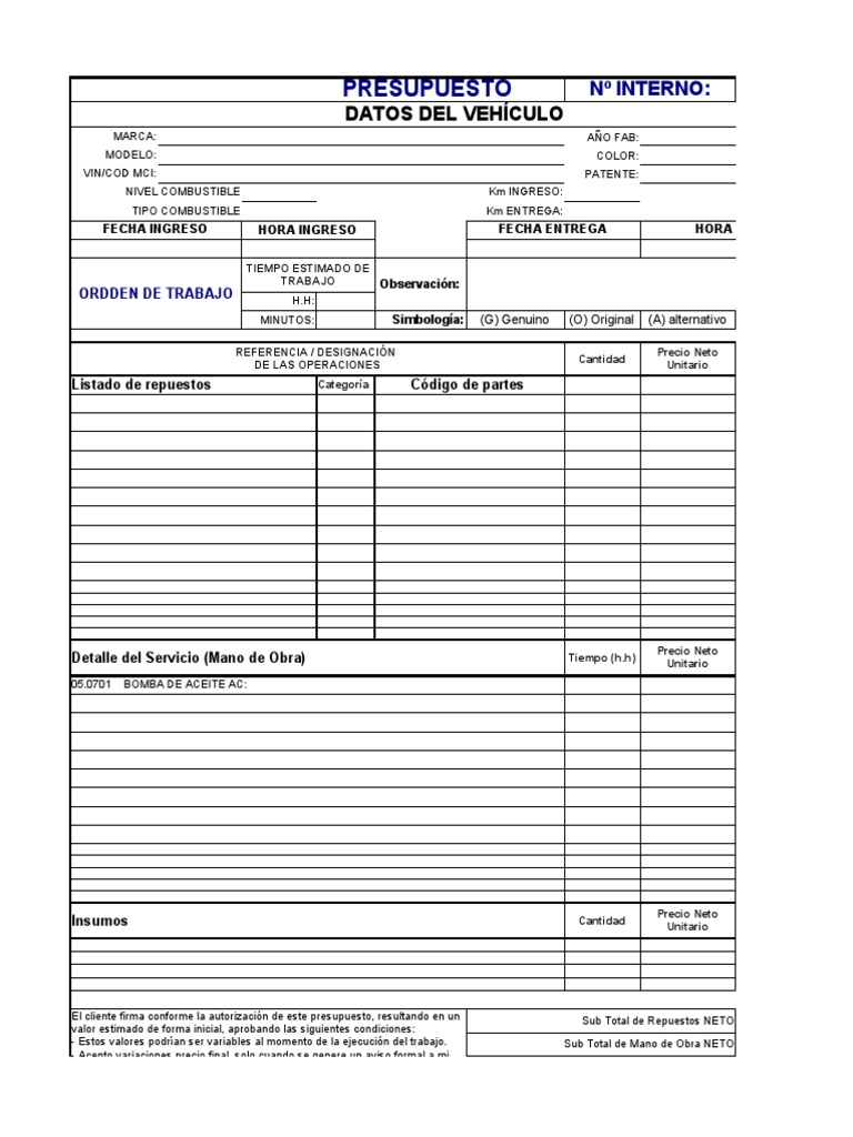 HOJA PRESUPUESTO TALLER MECANICO | PDF