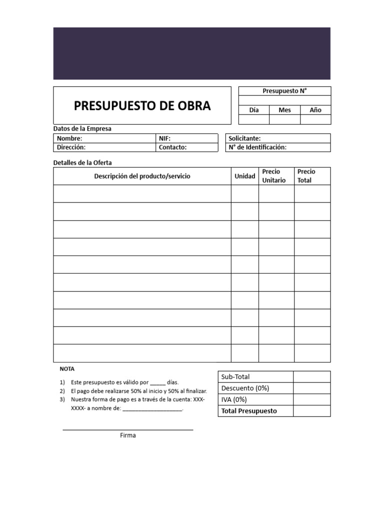 Plantilla Presupuesto en Word, Excel y PDF 【GRATIS】