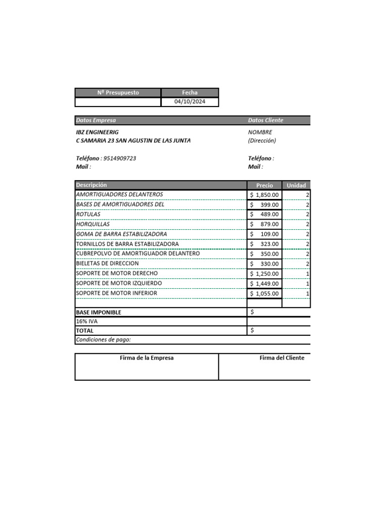 Plantilla de Presupuesto Taller Mecánico | PDF | Presupuesto