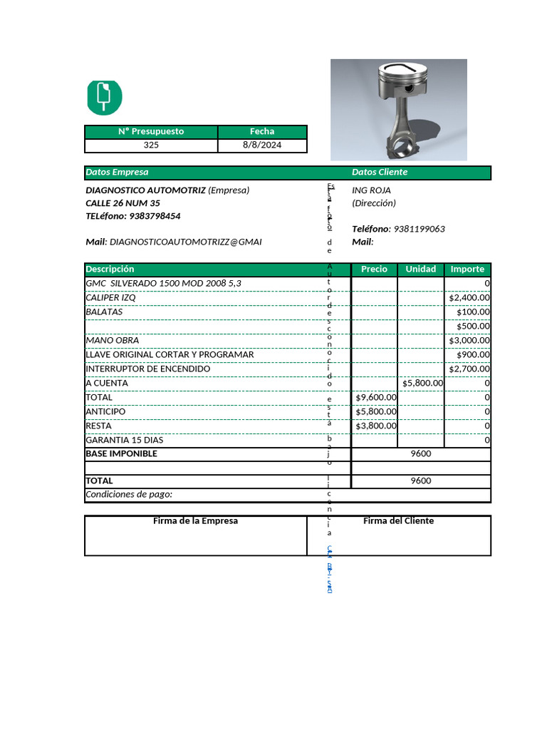 Plantillas presupuesto taller mecánico Excel/Word/PDF