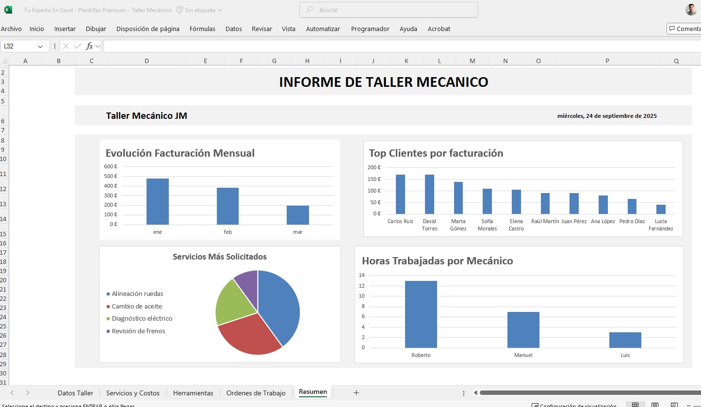 Plantilla Excel para taller mecánico | PlantillasOffice.Net
