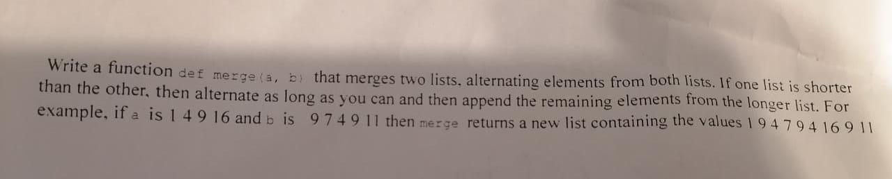 Solved Write a function dei merge(a, b that merges two | Chegg.com