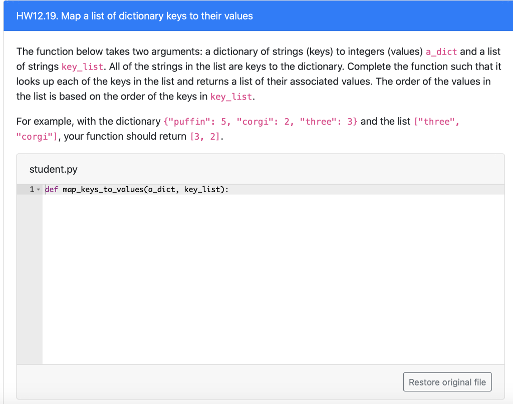 Solved Create the function Which takes a dictionary and a | Chegg.com