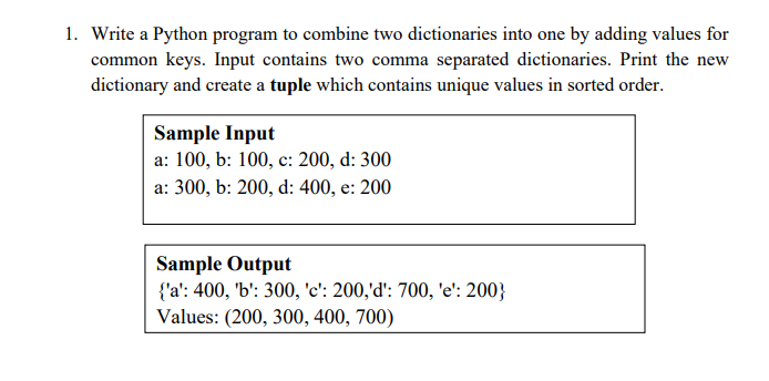 Solved 1. Write a Python program to combine two dictionaries | Chegg.com