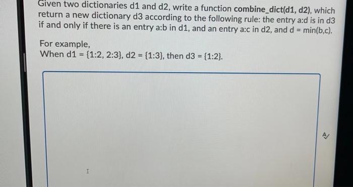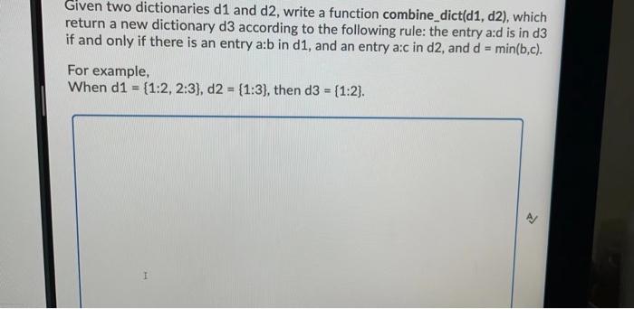 Solved Given two dictionaries d1 and d2, write a function | Chegg.com
