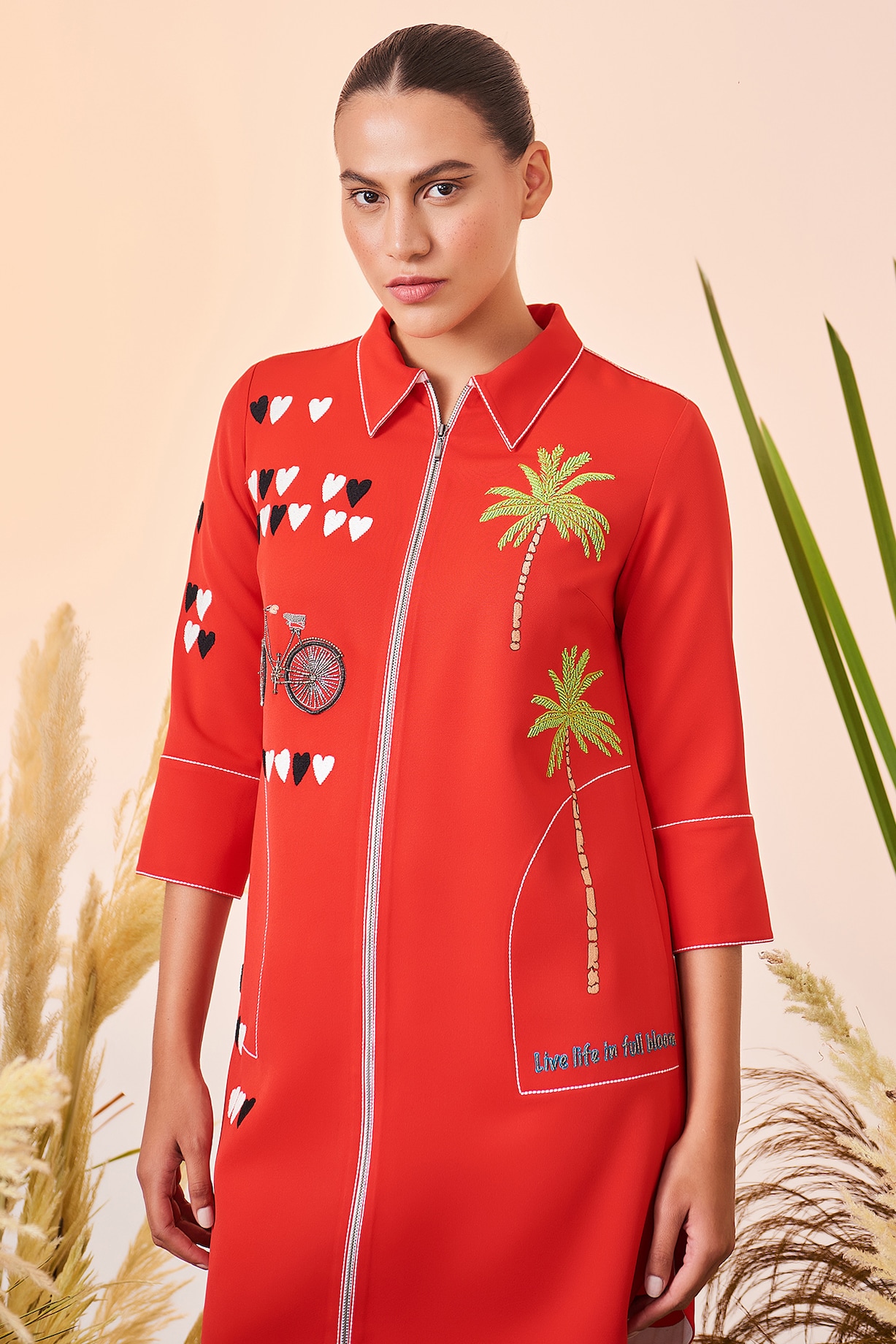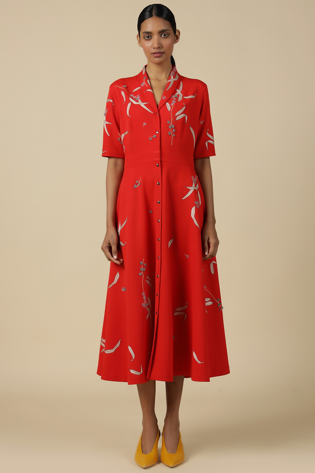 Red Embroidered Mini Shirt Dress by Shahin Mannan at Pernia's Pop Up ...