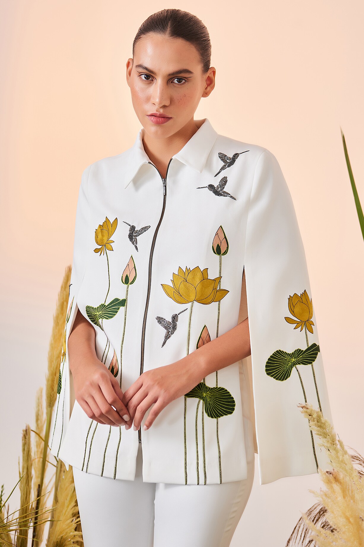 White Embroidered Cape by Shahin Mannan at Pernia's Pop Up Shop 2025