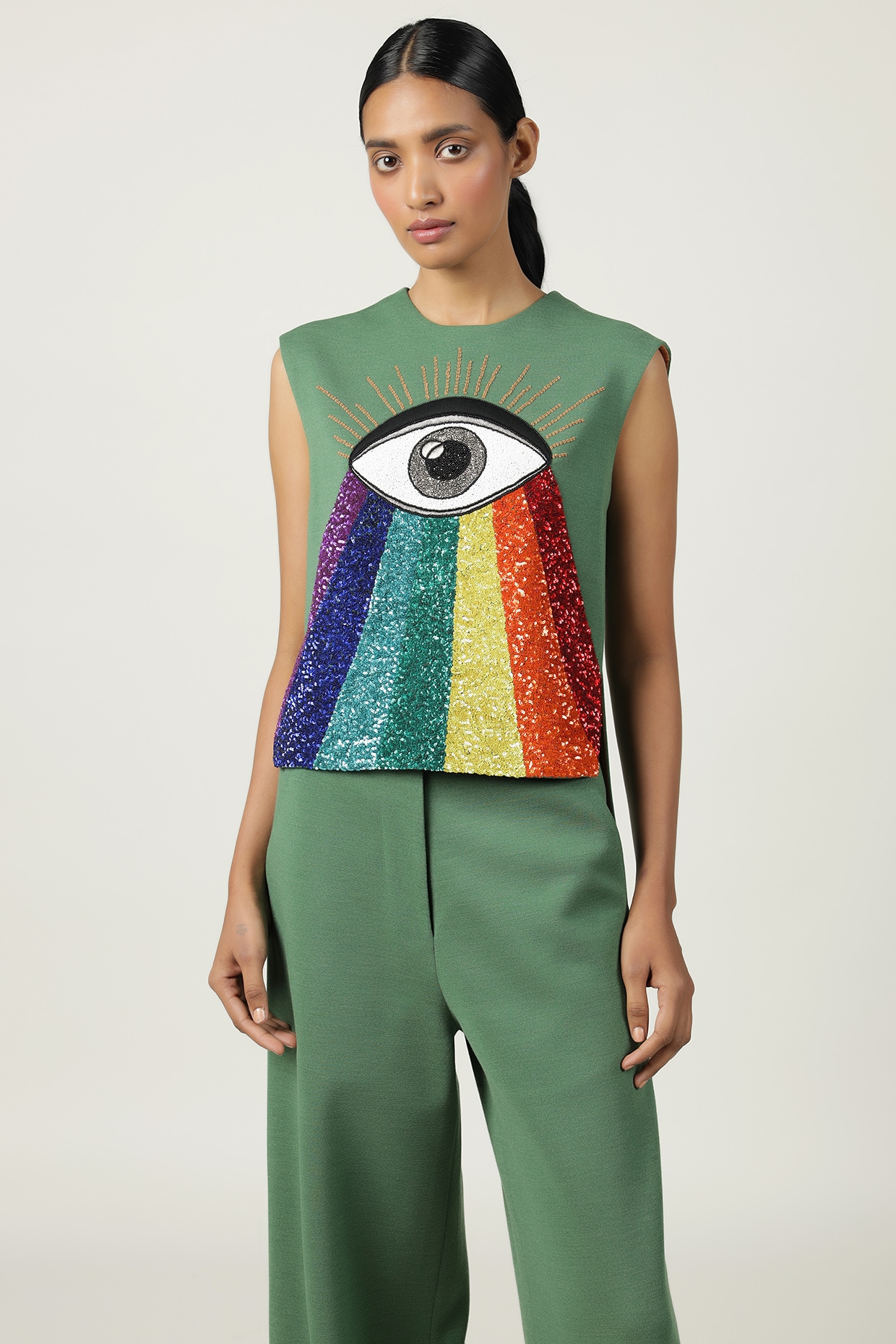 Jade Green Jersey Embroidered Top by Shahin Mannan at Pernia's Pop Up ...