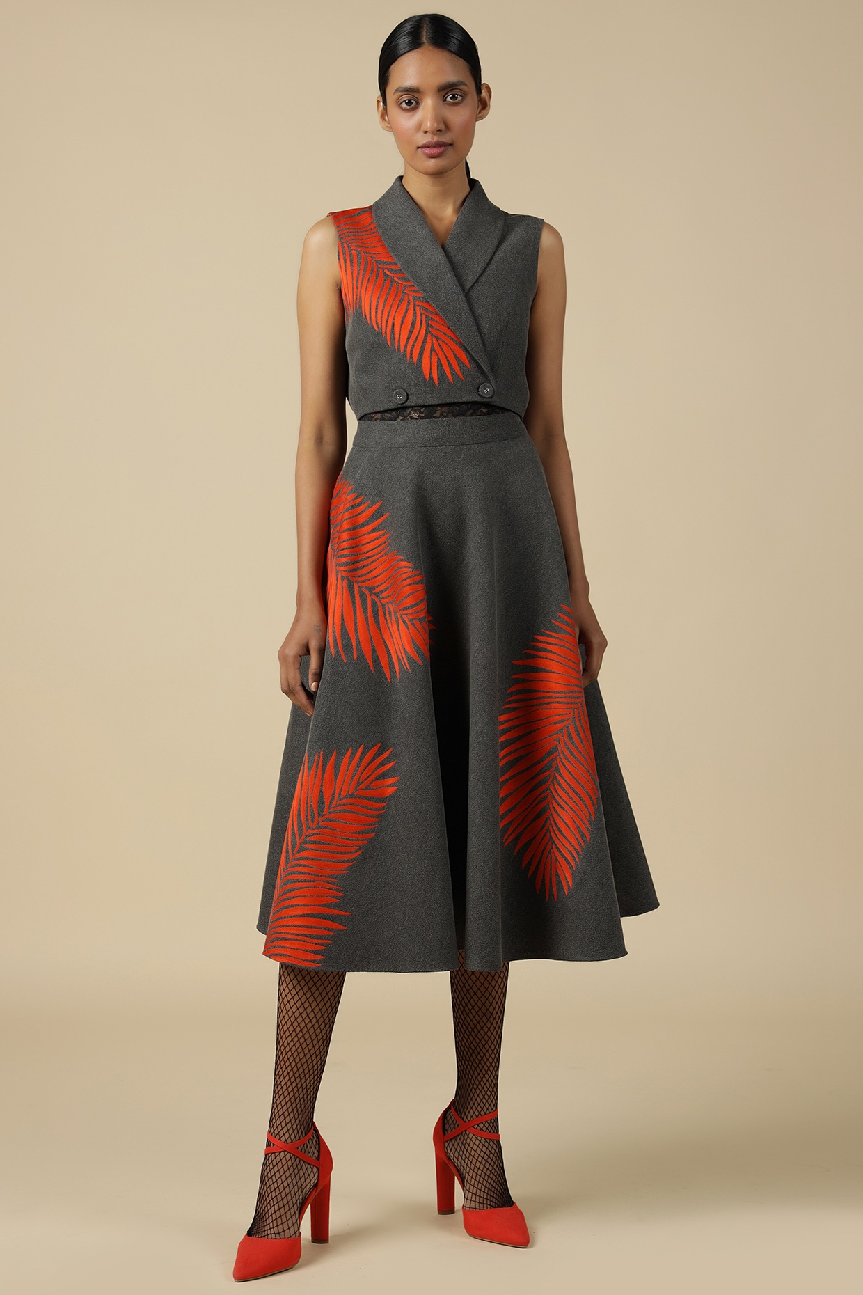 Buy Red Double Crepe Embroidery Distorted Checks Jacket And Circular ...