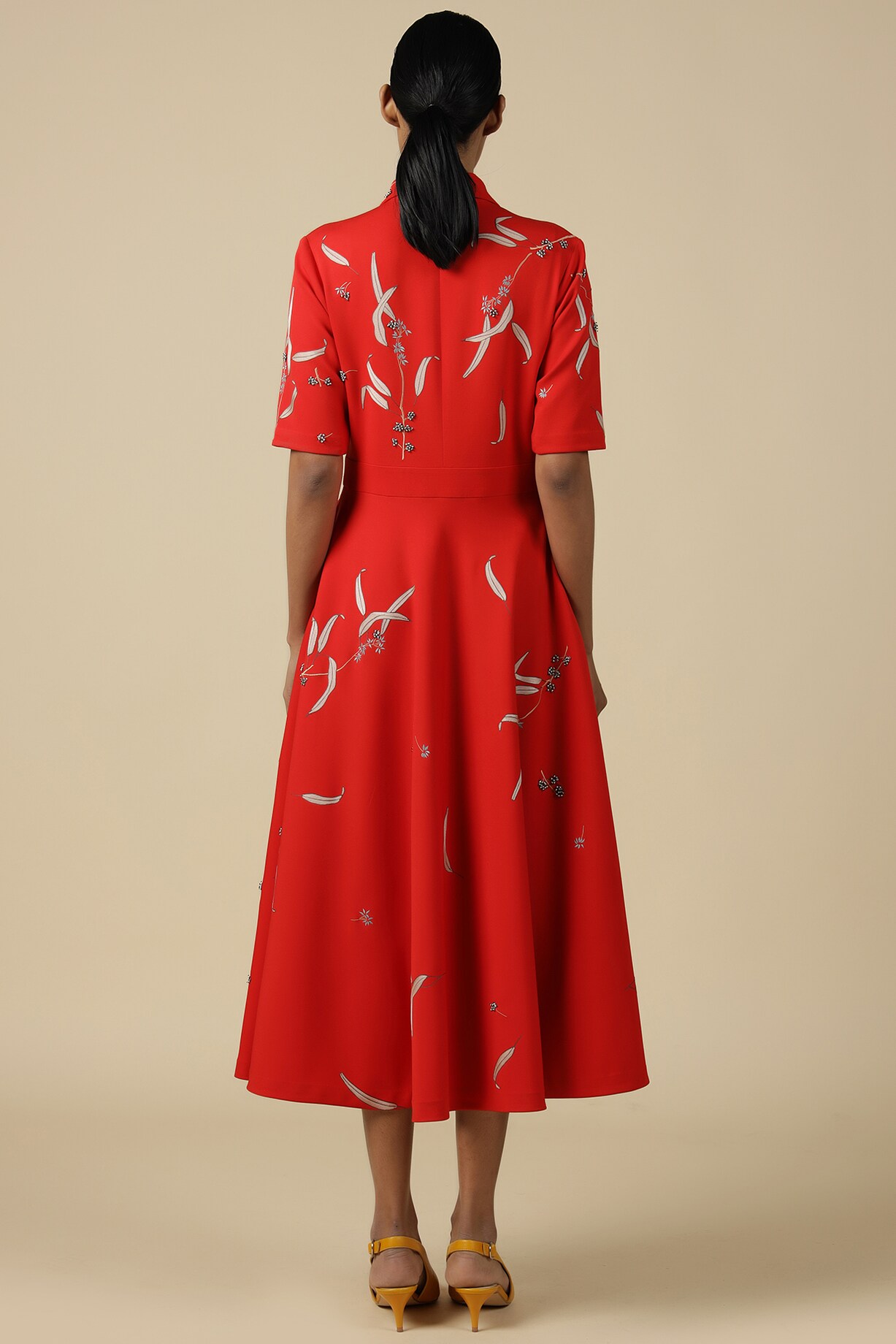 Red Embroidered Midi Dress by Shahin Mannan at Pernia's Pop Up Shop 2025