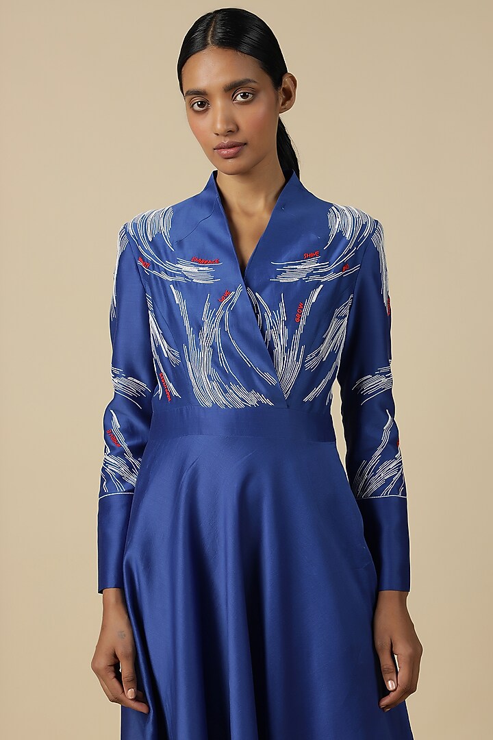 Electric Blue Chanderi Dress by Shahin Mannan at Pernia's Pop Up Shop 2026