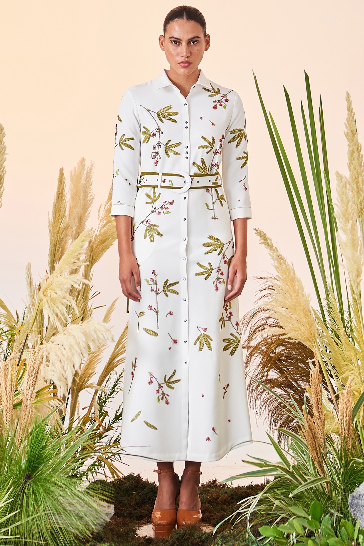 Ivory Embroidered Shirt Dress by Shahin Mannan at Pernia's Pop Up Shop 2025
