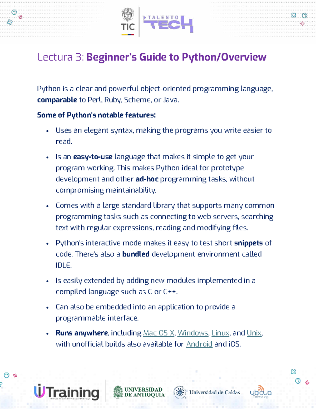 Lectura-3-Beginner’s Guide to Python Overview - Lectura 3: Beginner’s ...