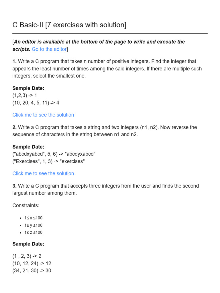 C Programming Basic-II - Exercises, Practice, Solution - W3resource ...