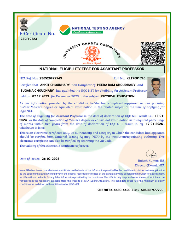 Ankit Net Certificate | PDF