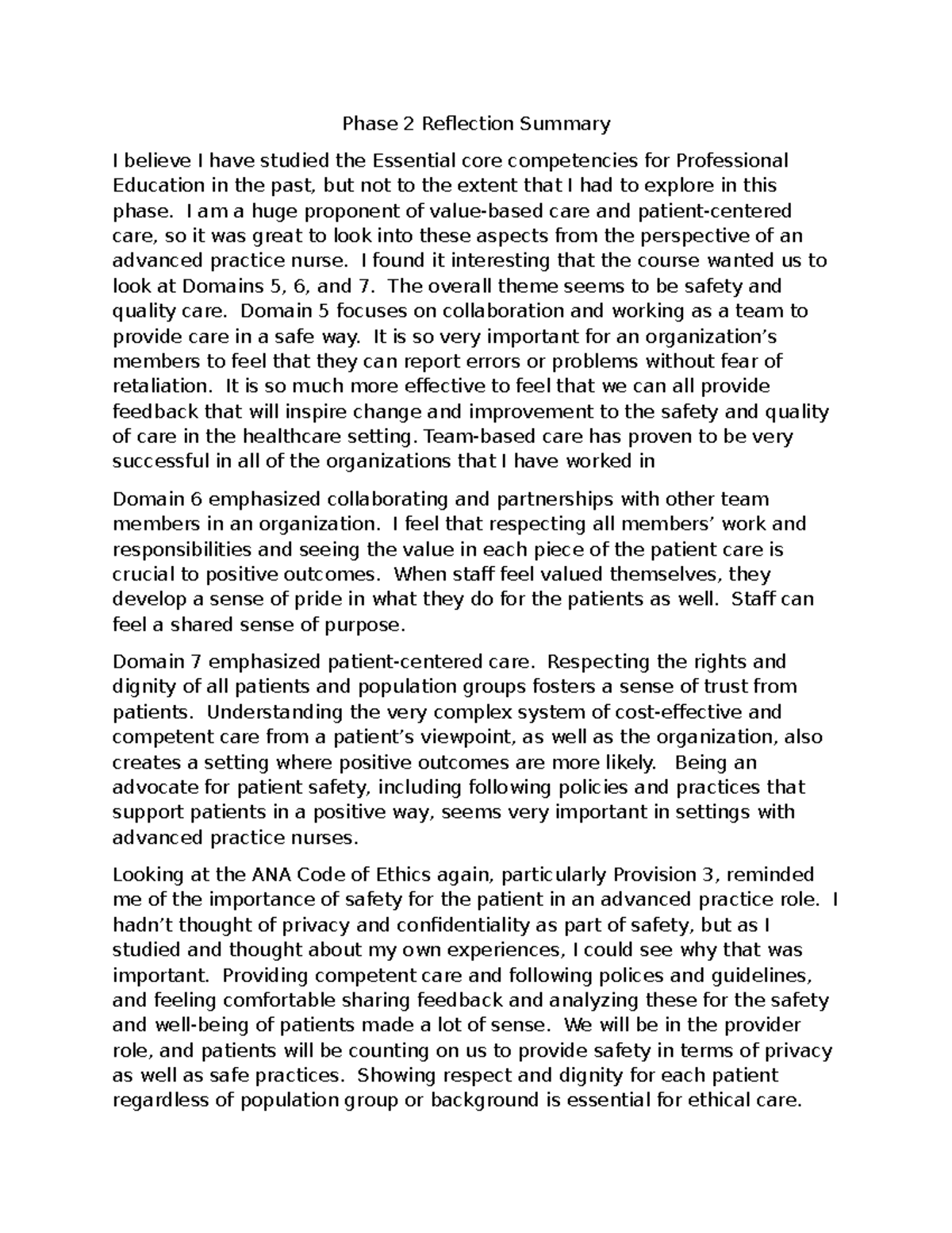 D02 Reflection Summary: Exploring Core Competencies in Nursing - Studocu
