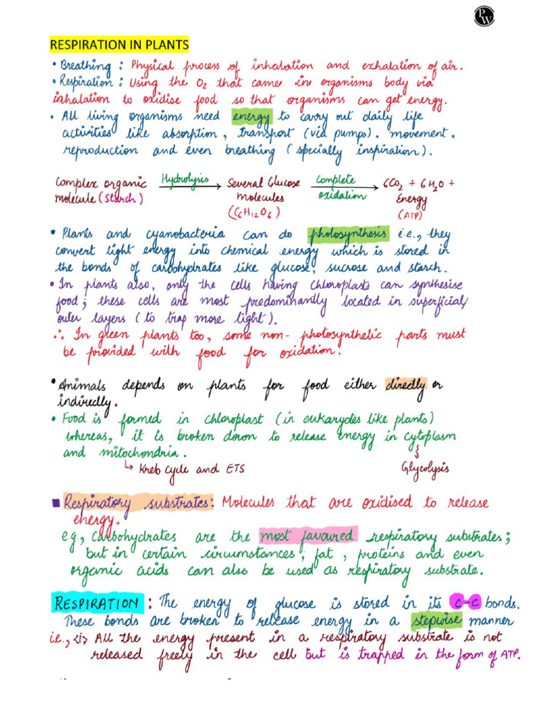 6906342c7db8f85846f7b3fd - ## - Respiration in Plants - Handwritten ...