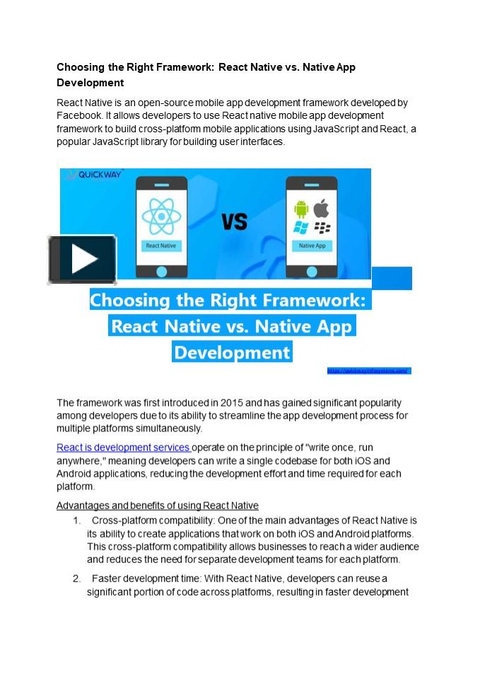 CHOOSING THE RIGHT FRAMEWORK: REACT NATIVE VS. NATIVE APP DEVELOPMENT ...