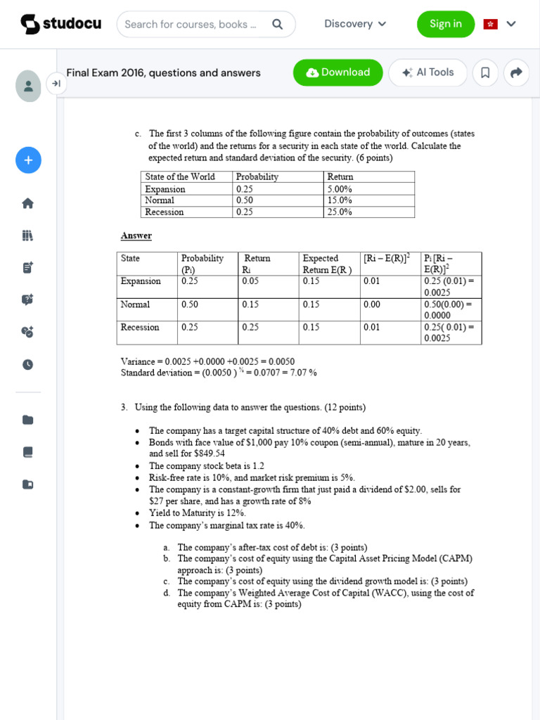 Final Exam 2016, Questions and Answers - Part I Multiple Choice ...