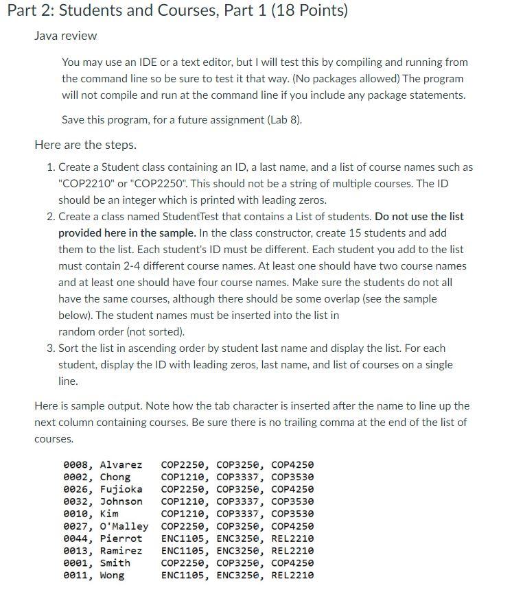 Solved Part 2: Students and Courses, Part 1 (18 Points) Java | Chegg.com