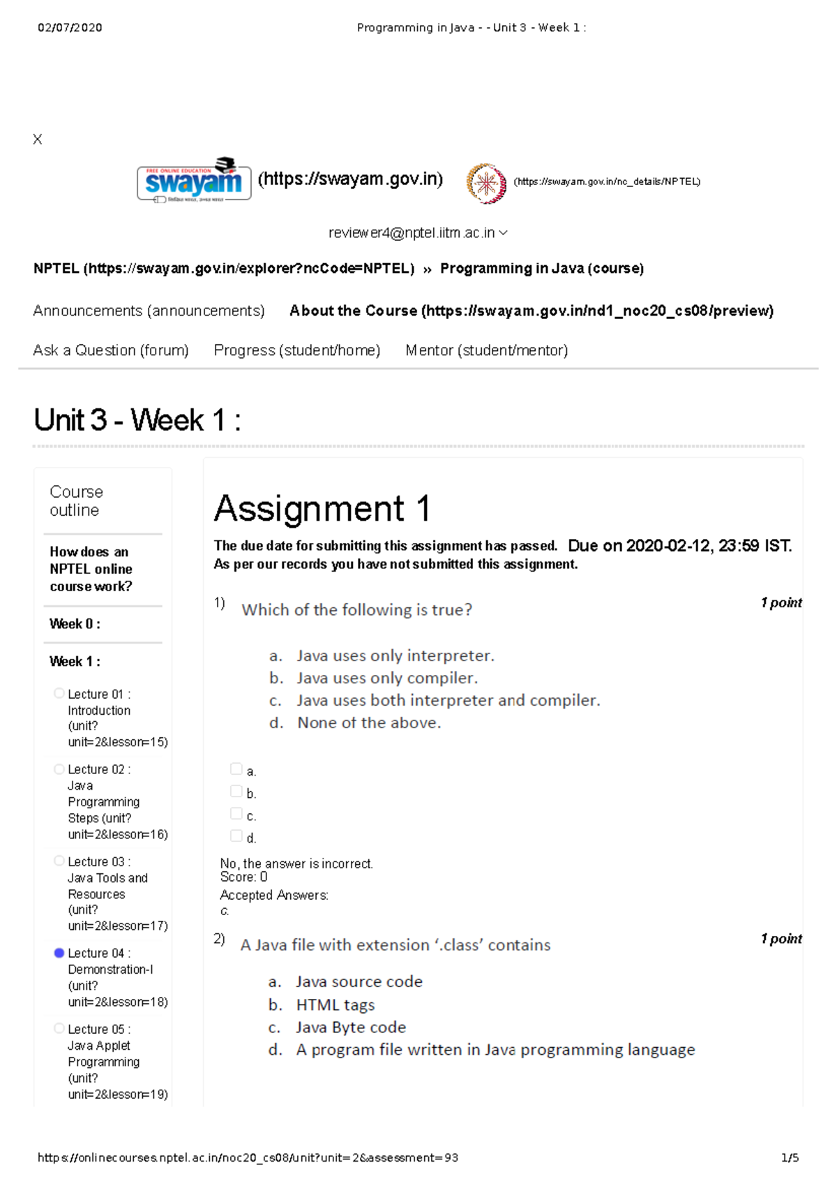 Noc20-cs08 Week 01 Assignment 01: Java Programming Basics Overview ...