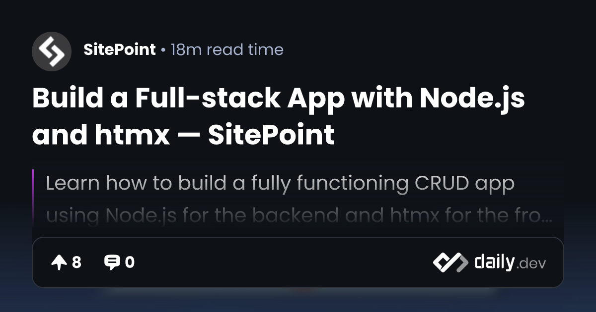 Build a Full-stack App with Node.js and htmx — SitePoint | daily.dev