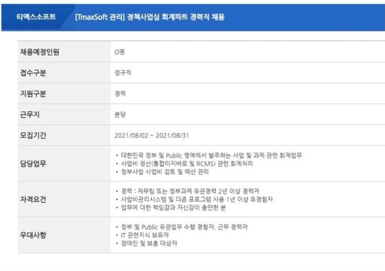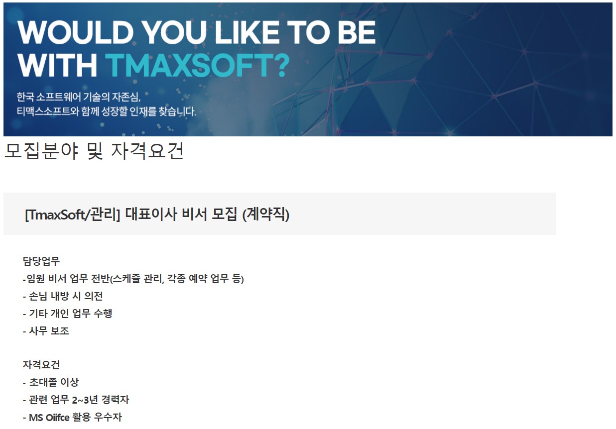 티맥스소프트 채용공고 인포메이션/임원비서 모집 (계약직) | 2023년 채용
