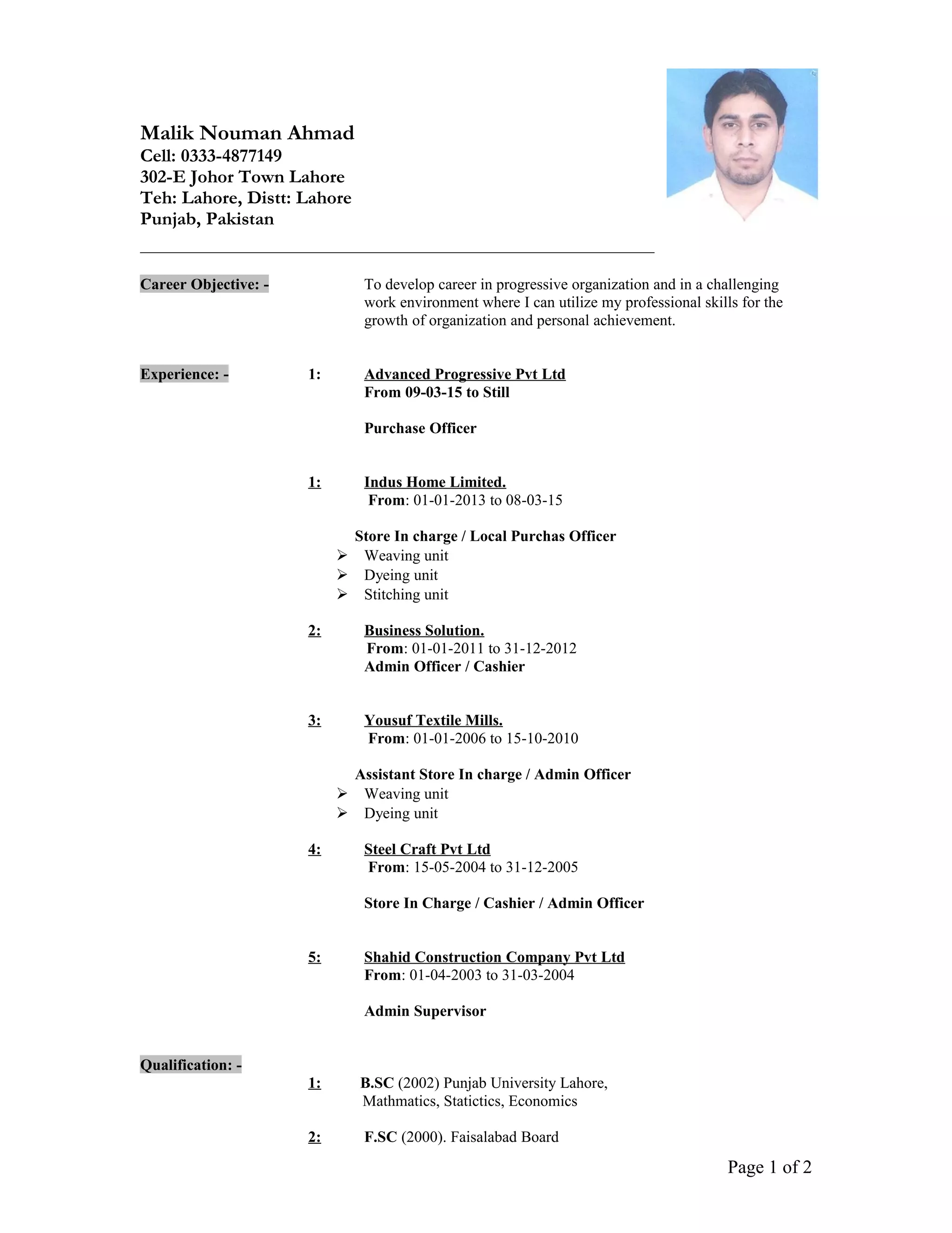 CV Malik Nouman Ahmad | PDF