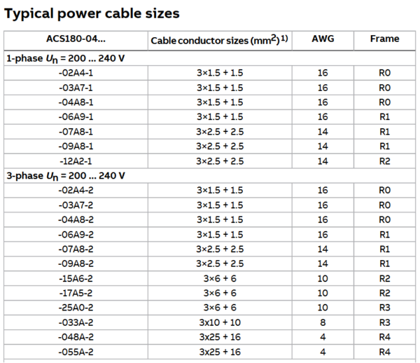 ABB ACS180 Drive Cable Length & Cable Size - Click2Electro