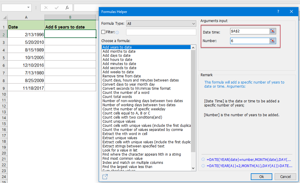 Quickly add / subtract years / months / days / weeks to date in Excel