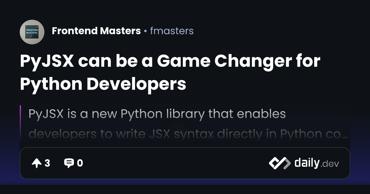 PyJSX can be a Game Changer for Python Developers | daily.dev