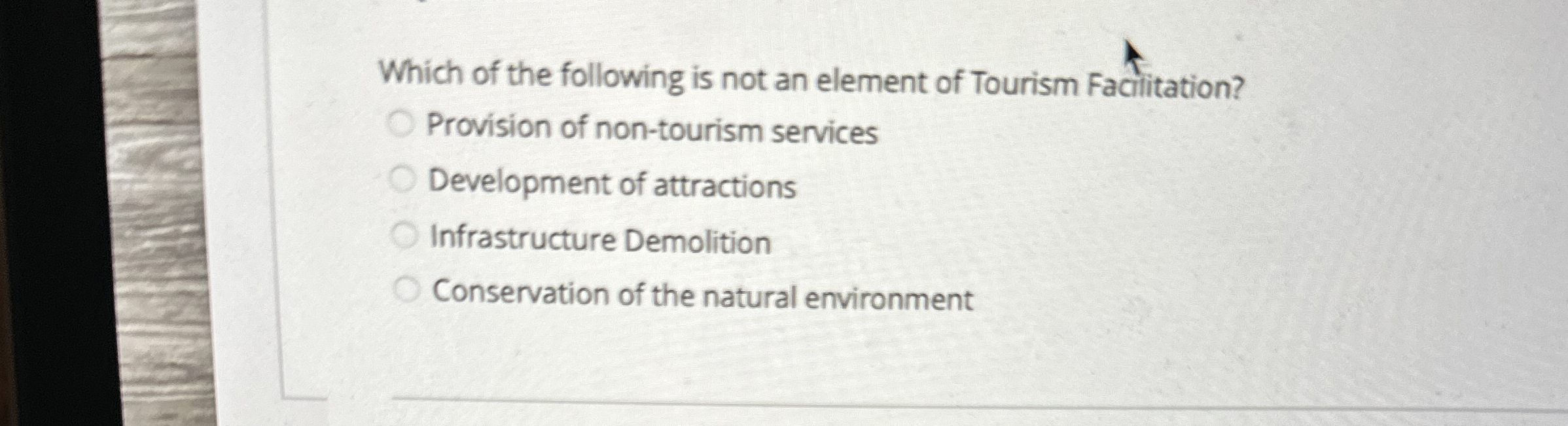 Solved Which of the following is not an element of Tourism | Chegg.com