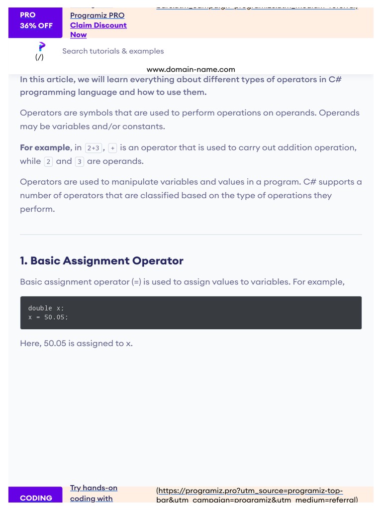C# Operators - Arithmetic, Comparison, Logical and More - PDF | PDF | C ...