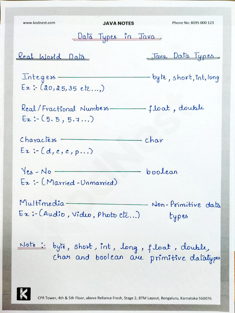 2666134-Java - Introduction To DataTypes - NOTES | PDF
