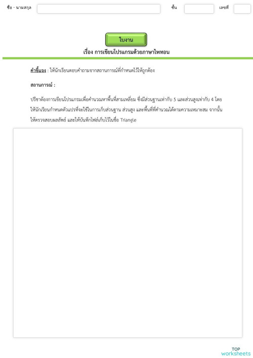 แผน 7 การเขียนโปรแกรมด้วยภาษาไพทอน (Python) ใบงานเชิงโต้ตอบ | TopWorksheets