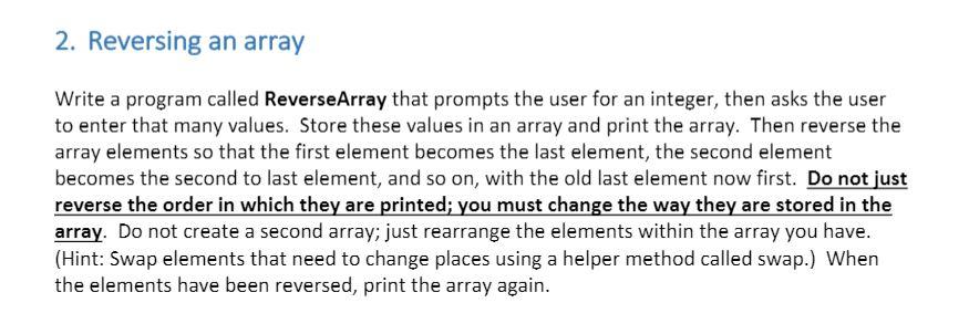 Solved 2. Reversing an array Write a program called | Chegg.com