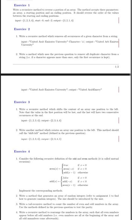 Solved Exercice 1 Write a recursitue method to reverse a | Chegg.com