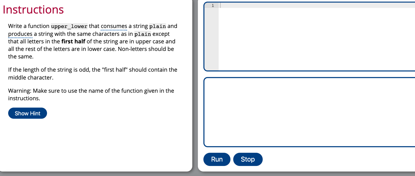 Solved str methods: upper or lower. Complete this function | Chegg.com