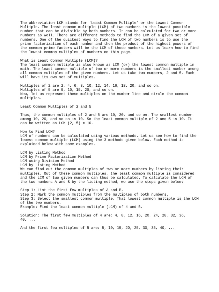 Understanding Least Common Multiple (LCM) | PDF